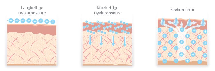 Das Wirkstoff-System Hyaluron ermöglicht eine optimale Versorgung der Haut mit Feuchtigkeit, die Stimulation der Kollagen-Synthese sowie der Bildung wichtiger hauteigener Feuchthaltefaktoren (NMF).